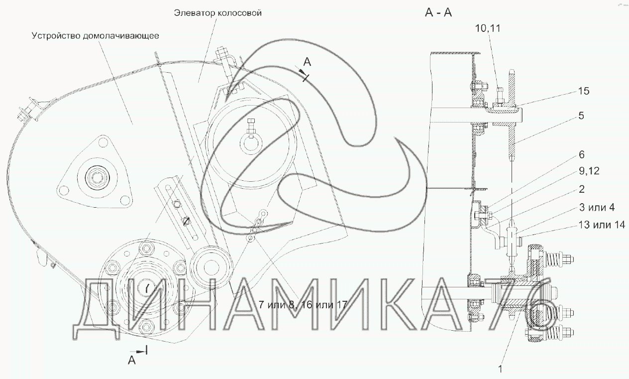 Перечень комплектующих от Установка цепного привода элеватора колосового на KЗС-812