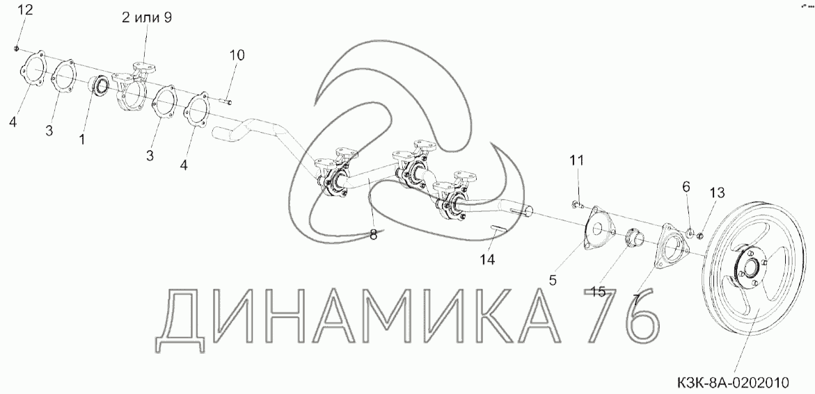 Перечень комплектующих от Вал коленчатый ведущий КЗК-8А-0212010 на KЗС-812