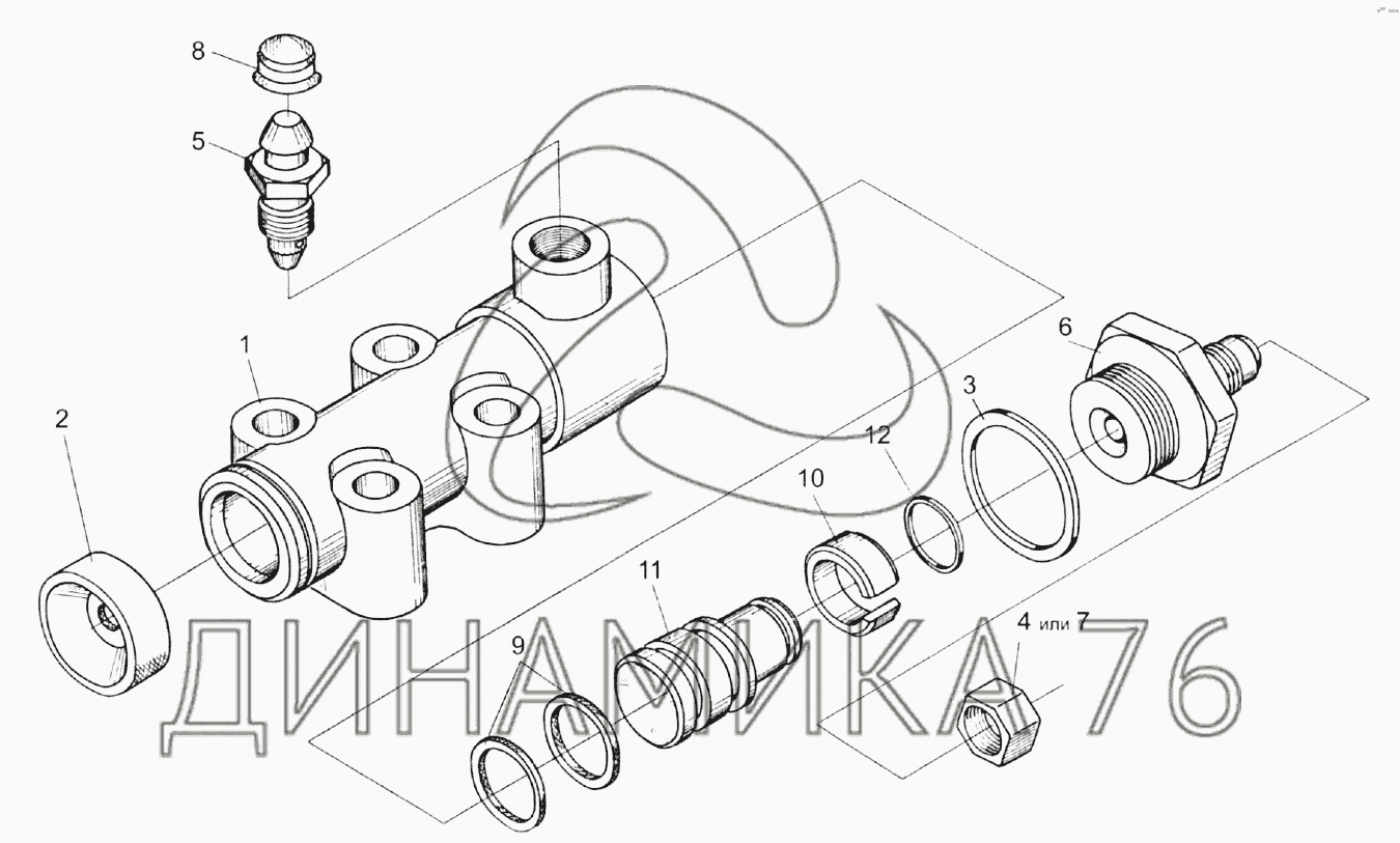 Схемы запчастей предназначены для справочных целей! Мы продаем не все запчасти от Гидроцилиндр тормоза МК-23М.03.220А на KЗС-812, представленные в этом списке.