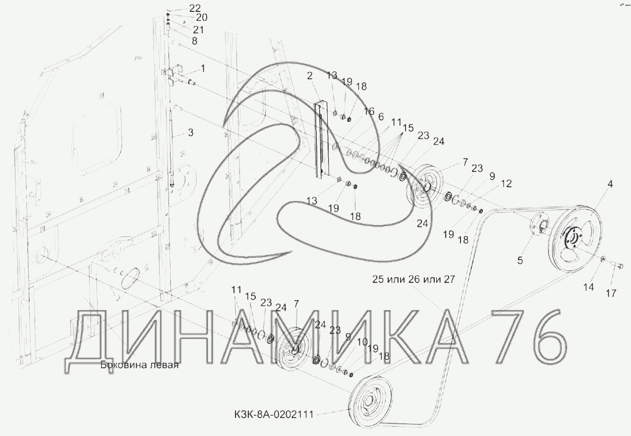 Перечень комплектующих от Установка привода соломотряса на KЗС-812