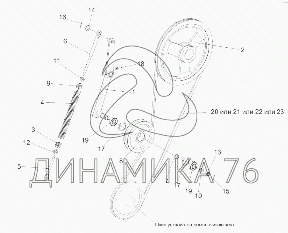Перечень комплектующих от Установка привода устройства домолачивающего на KЗС-812