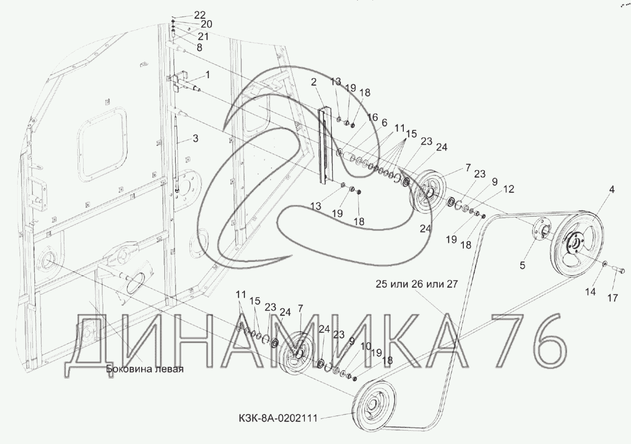 Перечень комплектующих от Установка привода соломотряса на KЗС-812
