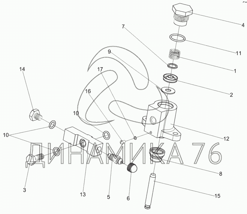 Перечень комплектующих от Гидроцилиндр блокировки диапазонов 3518020-46330 на КЗС-812С