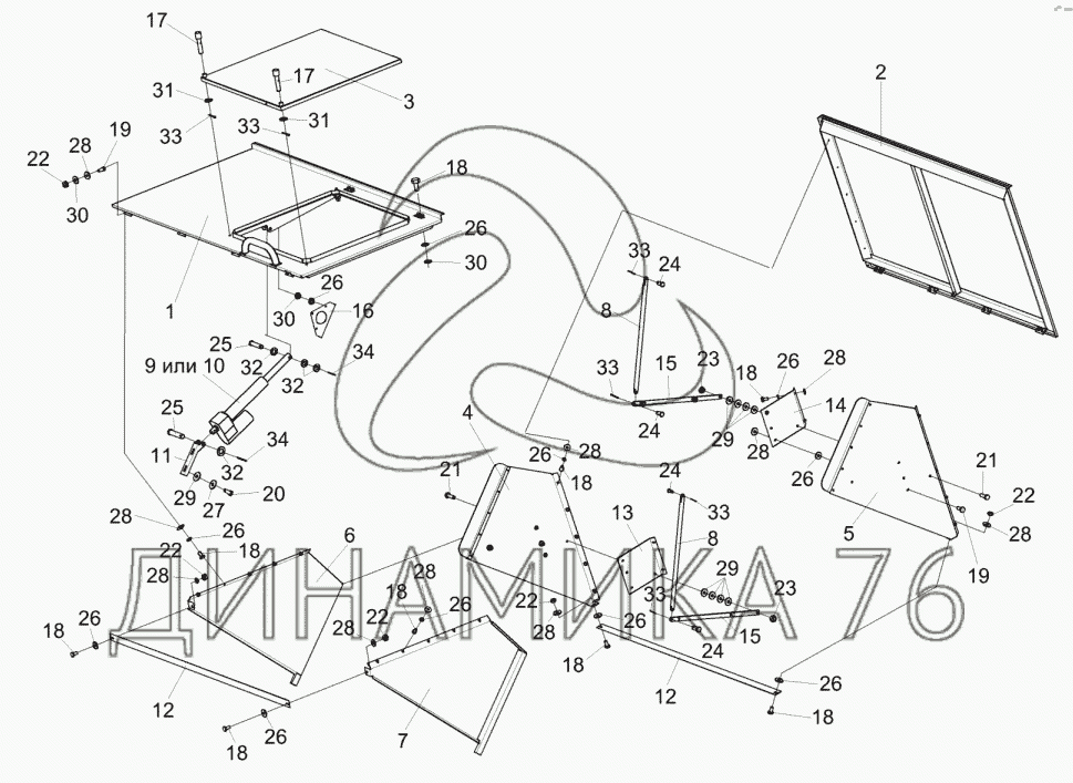 Перечень комплектующих от Крыша бункера КЗК-7-0204000 на КЗС-812С