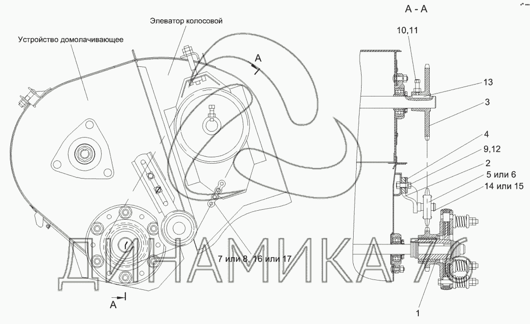 Установка цепного привода элеватора колосового — КЗС-812С:
