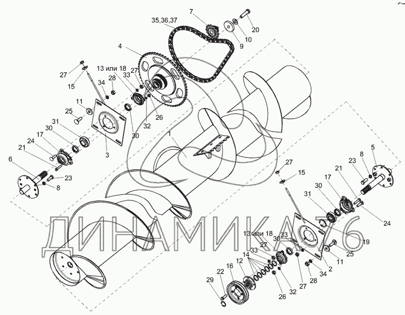 Перечень комплектующих от Установка шнека на ПКК-0460000