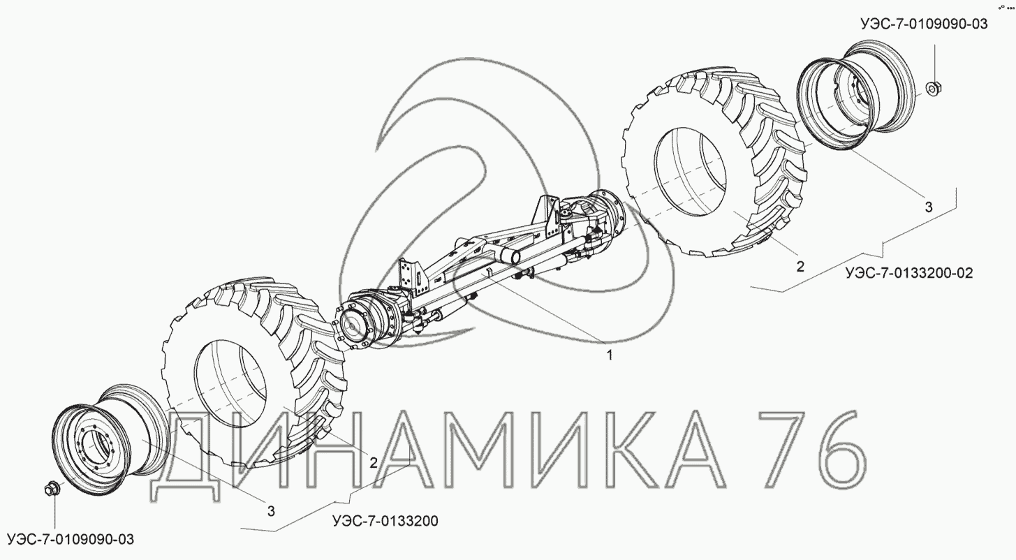 Перечень комплектующих от Установка колес управляемого ведущего моста на УЭС-2-250А