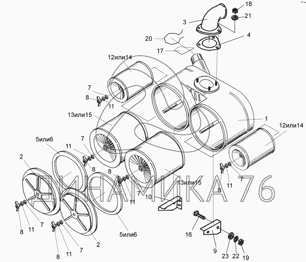 Перечень комплектующих от Воздухоочиститель УЭС-4-0400230Б на УЭС-2-250А