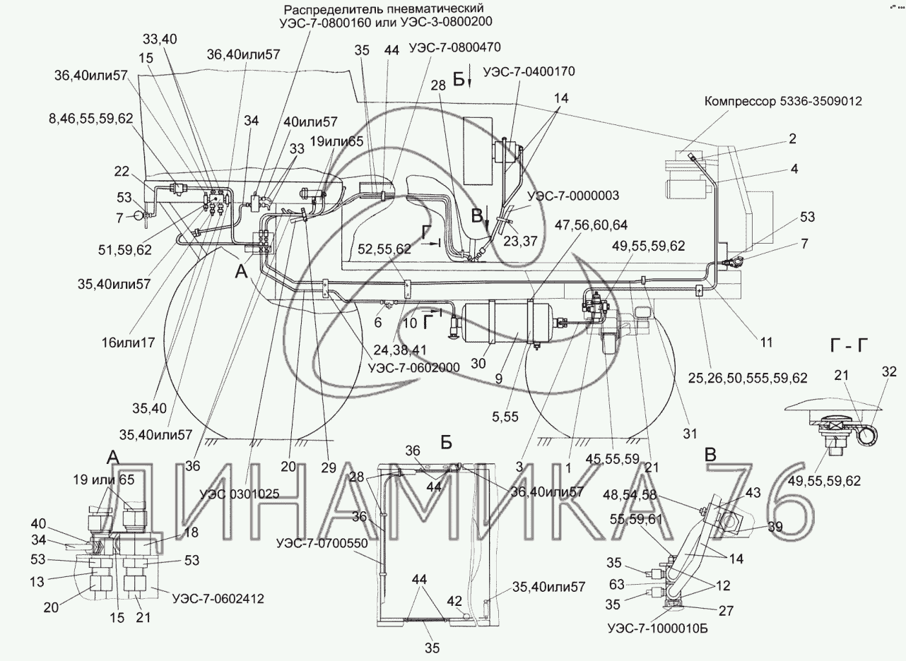 Схемы запчастей предназначены для справочных целей! Мы продаем не все запчасти от Пневмосистема УЭС-6-0800000 на УЭС-2-280А, представленные в этом списке.