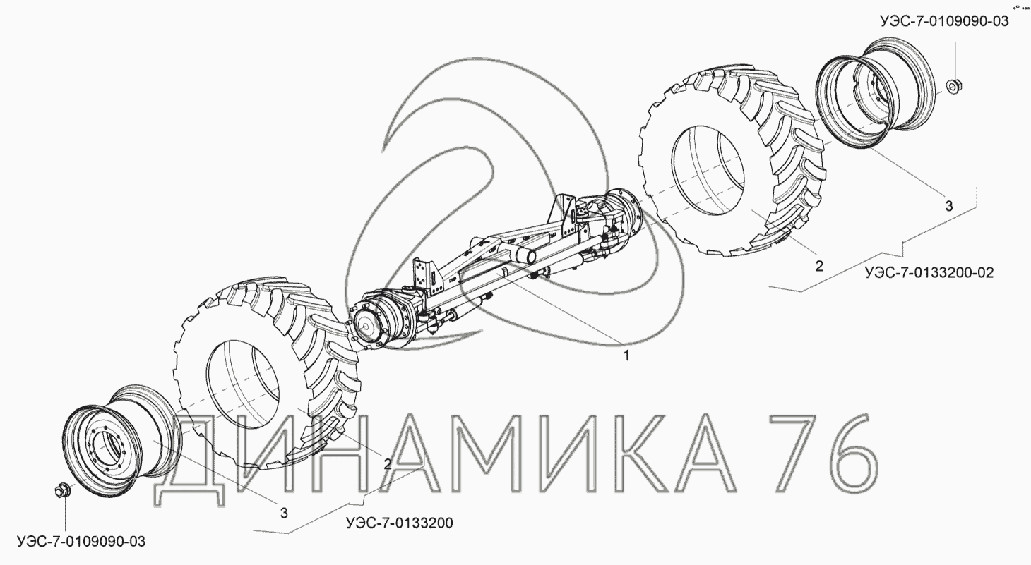 Перечень комплектующих от Установка колес управляемого ведущего моста на УЭС-2-280А