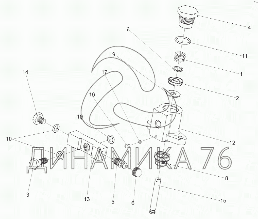 Перечень комплектующих от Гидроцилиндр блокировки диапазонов 3518020-46330 на УЭС-2-280А
