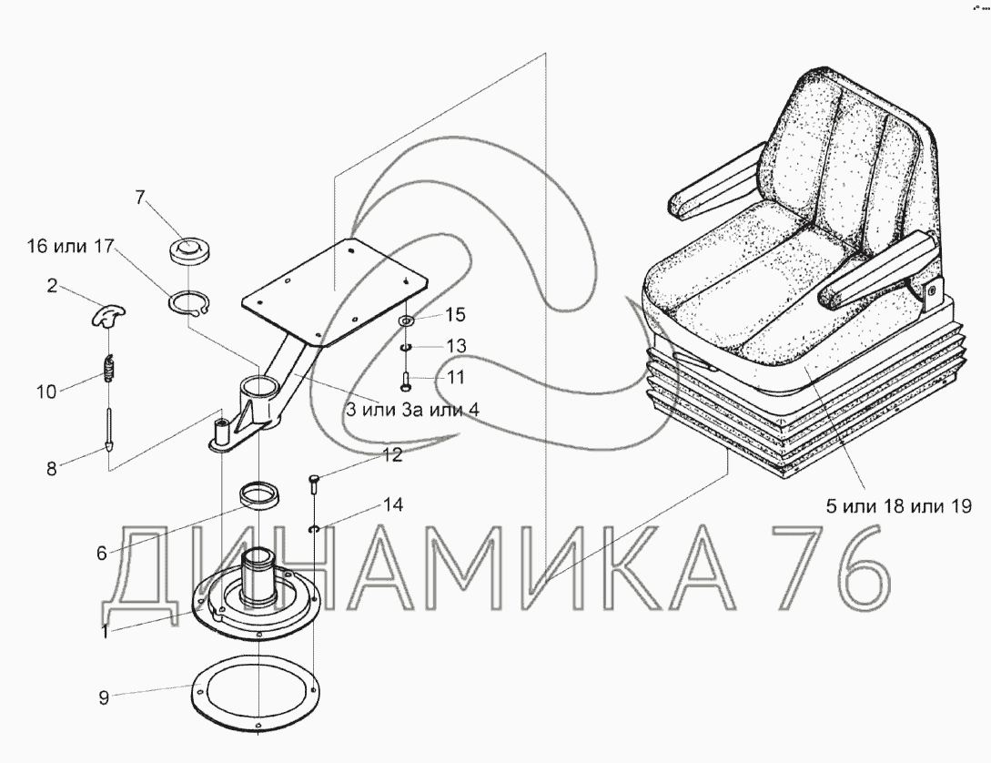 Перечень комплектующих от Установка сиденья на УЭС-2-280А