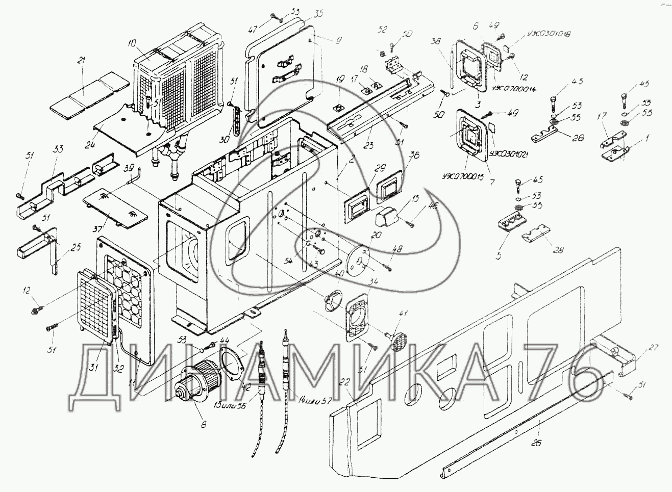 Схемы запчастей предназначены для справочных целей! Мы продаем не все запчасти от Пульт управления УЭС0301000 на УЭС Полесье-250, представленные в этом списке.