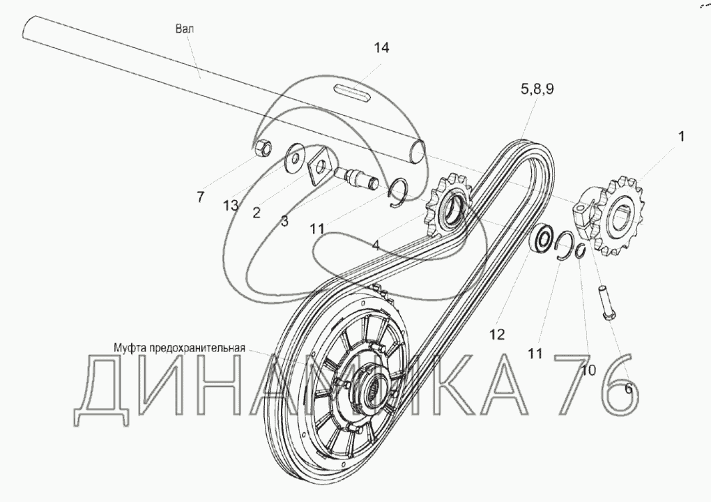 Перечень комплектующих от Привод шнека на ЖЗК-9