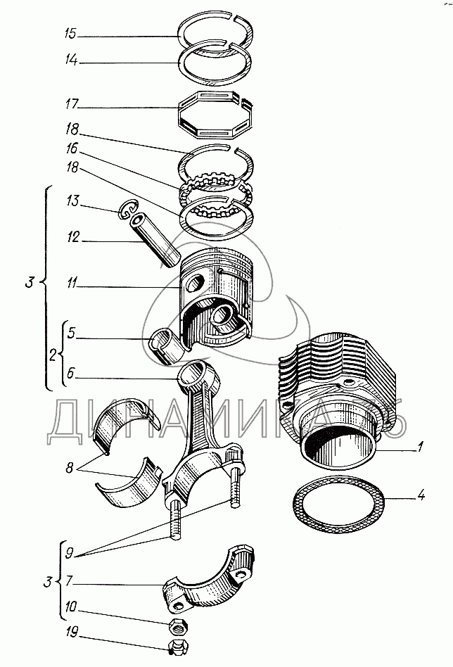 Цилиндр, поршень и шатун — Т-012: