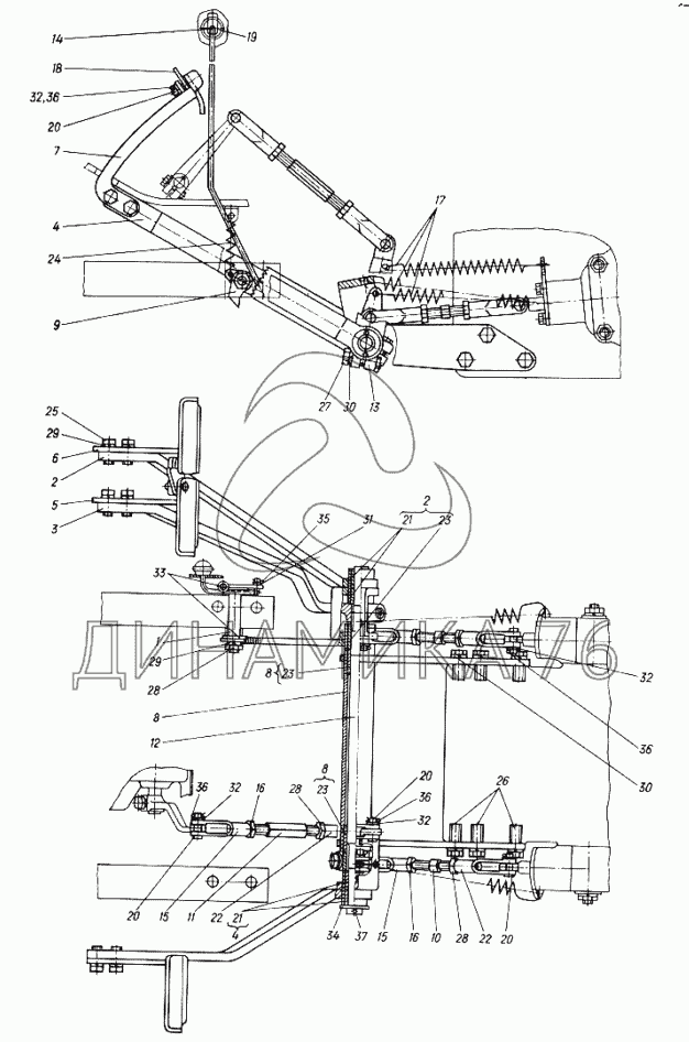 Перечень комплектующих от Управление тормозами и муфтой сцепления на Т-012