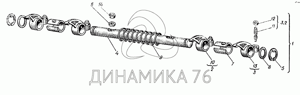 Перечень комплектующих от Вал с коромыслами на Т-012