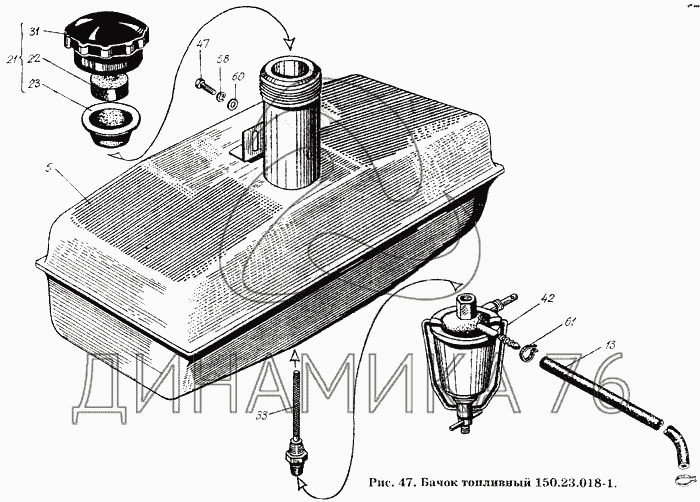Перечень комплектующих от Бачок топливный 150.23.018-1 на Т-150К