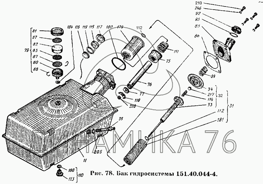 Схемы запчастей предназначены для справочных целей! Мы продаем не все запчасти от Бак гидросистемы 151.40.044-4 на Т-150К, представленные в этом списке.