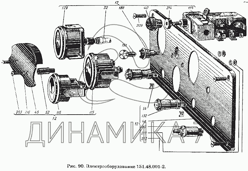 Перечень комплектующих от Электрооборудование 151.48.001-2 на Т-150К