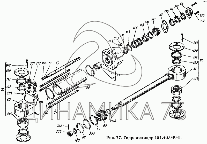 Перечень комплектующих от Гидроцилиндр 151.40.040-3 на Т-150К