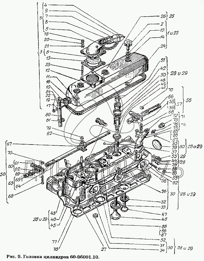 Схемы запчастей предназначены для справочных целей! Мы продаем не все запчасти от Головка цилиндров 60-06001.10 на Т-150К, представленные в этом списке.