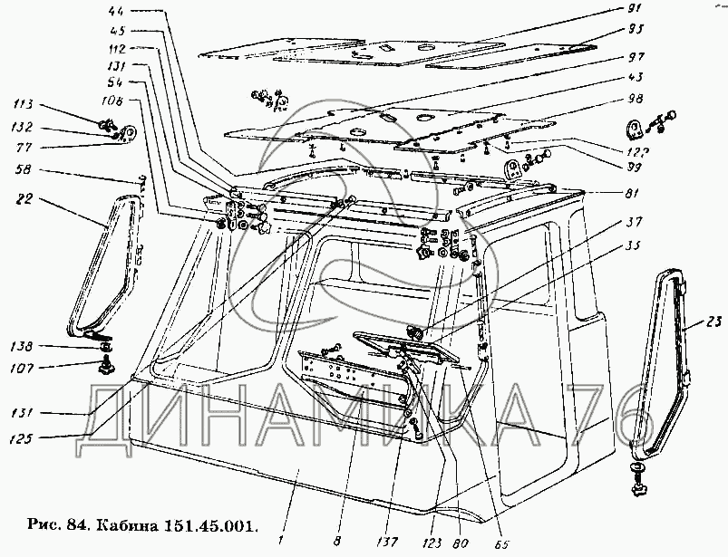 Перечень комплектующих от Кабина 151.45.001 на Т-150К