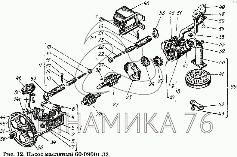 Схемы запчастей предназначены для справочных целей! Мы продаем не все запчасти от Насос масляный 60-09001.32 на Т-150К, представленные в этом списке.