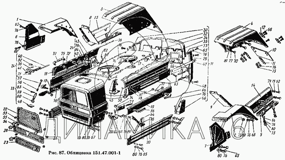 Схемы запчастей предназначены для справочных целей! Мы продаем не все запчасти от Облицовка 151.47.001-1 на Т-150К, представленные в этом списке.