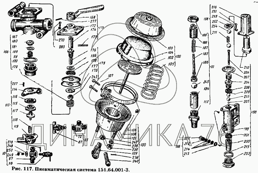 Перечень комплектующих от Пневматическая система 151.64.001-3 на Т-150К