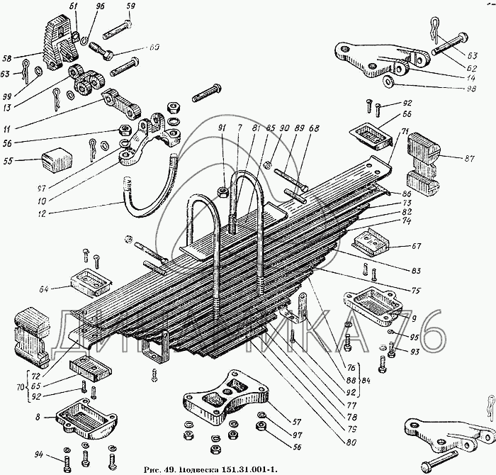 Схемы запчастей предназначены для справочных целей! Мы продаем не все запчасти от Подвеска 151.31.001-1 на Т-150К, представленные в этом списке.