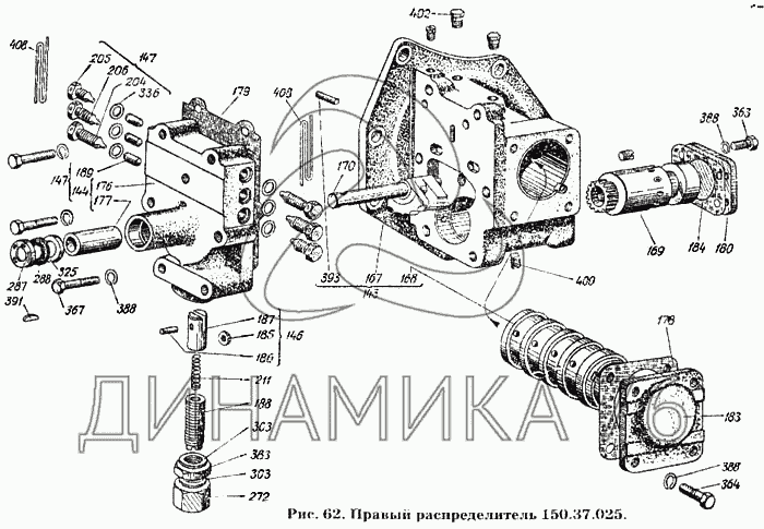 Схемы запчастей предназначены для справочных целей! Мы продаем не все запчасти от Правый распределитель 150.37.025 на Т-150К, представленные в этом списке.
