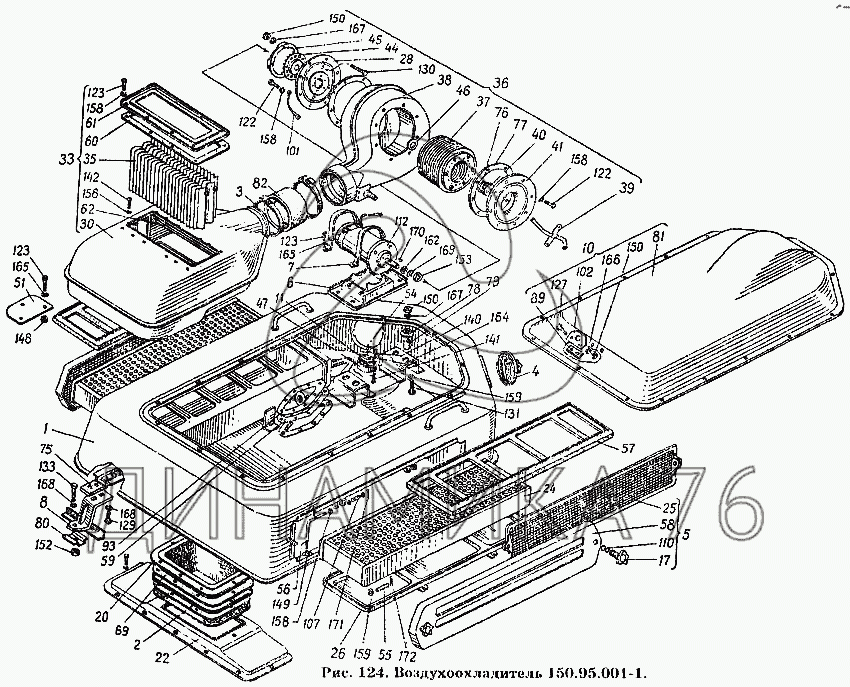 Схемы запчастей предназначены для справочных целей! Мы продаем не все запчасти от Воздухоохладитель 150.95.001-1 на Т-150К, представленные в этом списке.