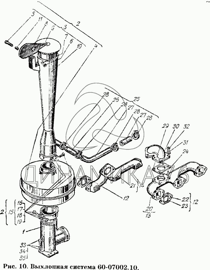 Перечень комплектующих от Выхлопная система 60-07002.10 на Т-150К