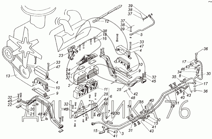 Схемы запчастей предназначены для справочных целей! Мы продаем не все запчасти от Установка двигателя на Т-150К (2004), представленные в этом списке.