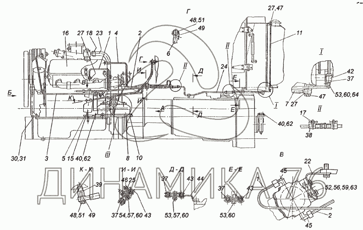 Перечень комплектующих от Установка двигателя на Т-150К (2004)