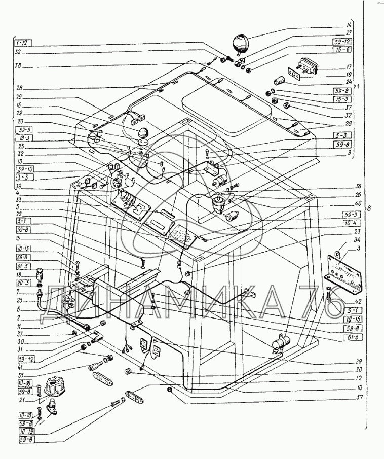 Схемы запчастей предназначены для справочных целей! Мы продаем не все запчасти от Электрооборудование кабины на Т-151К-08, представленные в этом списке.