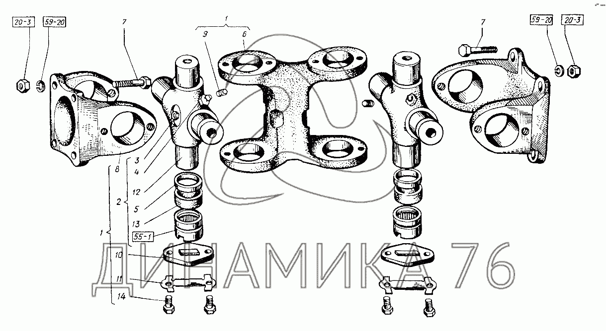 Передача карданная мостов. Вилка двойная — Т-151К-08: