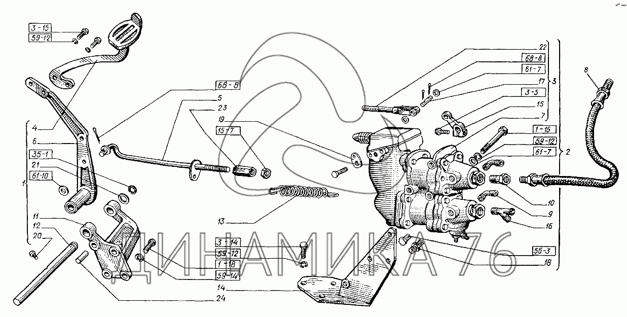 Перечень комплектующих от Пневмосистема. Кран тормозной на Т-151К-08