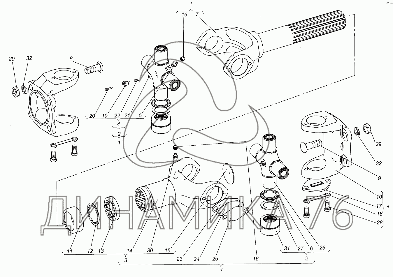 Перечень комплектующих от Передача карданная мостов на Т-151К