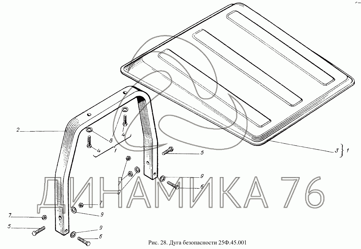 Перечень комплектующих от Дуга безопасности 25Ф.45.001 на Т-25Ф