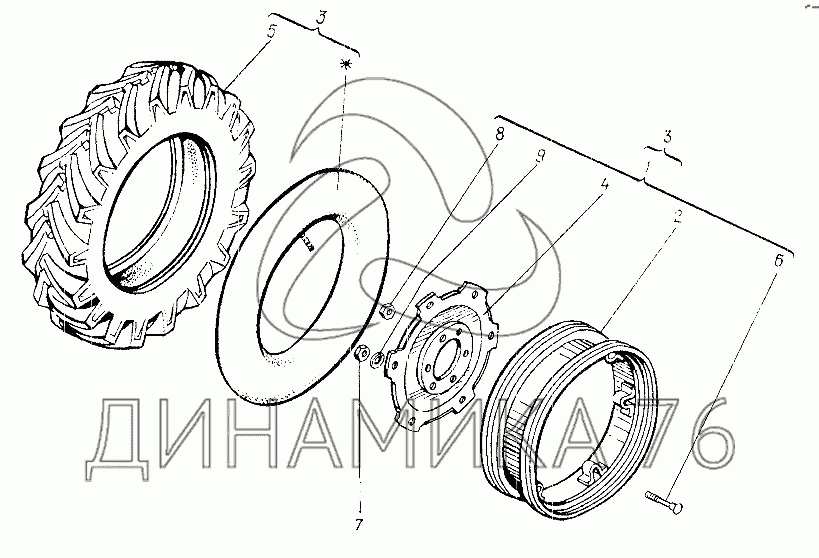 Перечень комплектующих от Колесо заднее 25Ф.34.001 на Т-25Ф