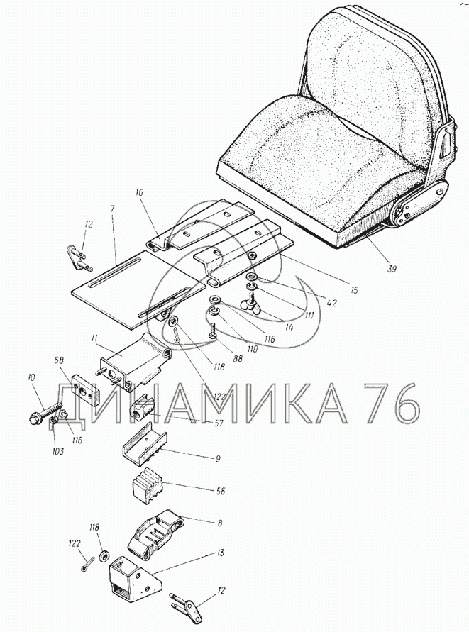 Перечень комплектующих от Сиденье 25Ф.44.010 на Т-25Ф