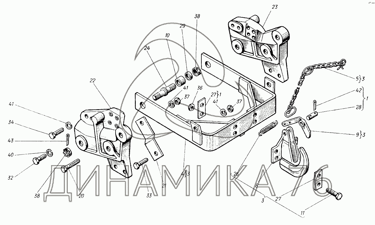 Перечень комплектующих от Устройство прицепное 25Ф.35.001 на Т-25Ф