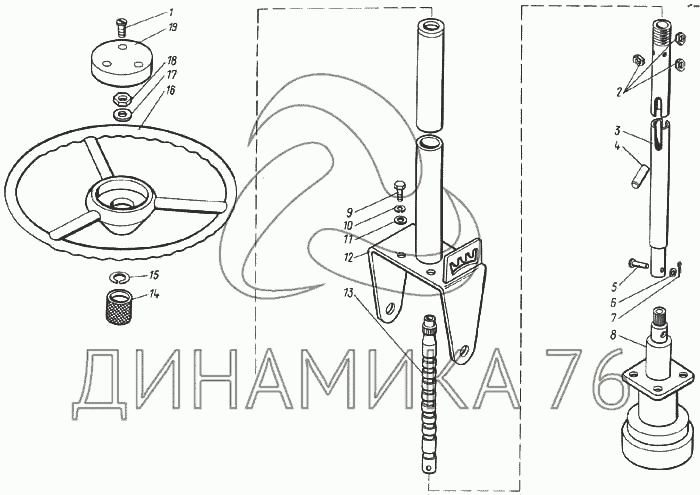 Перечень комплектующих от Управление рулевое КДМ 5-12Б на Енисей 1200