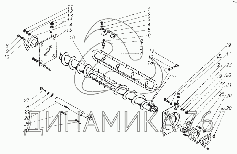 Перечень комплектующих от Шнек жатки (ЖКН5-2-36) на Енисей 1200М