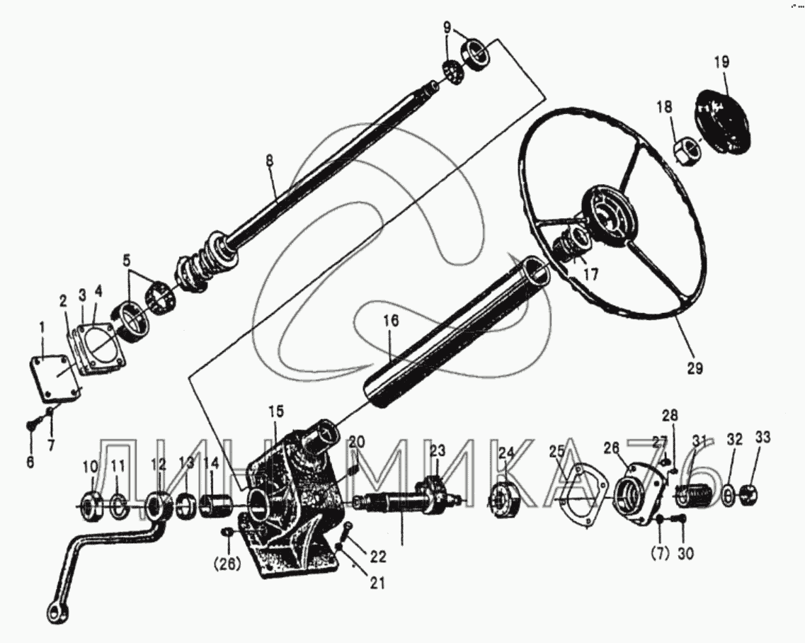 Перечень комплектующих от Рулевой механизм (нового образца) на Уралец