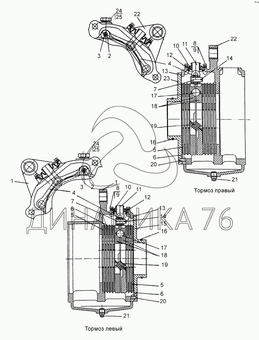 Перечень комплектующих от Тормоза «мокрые» (левый/правый) на 1025.5