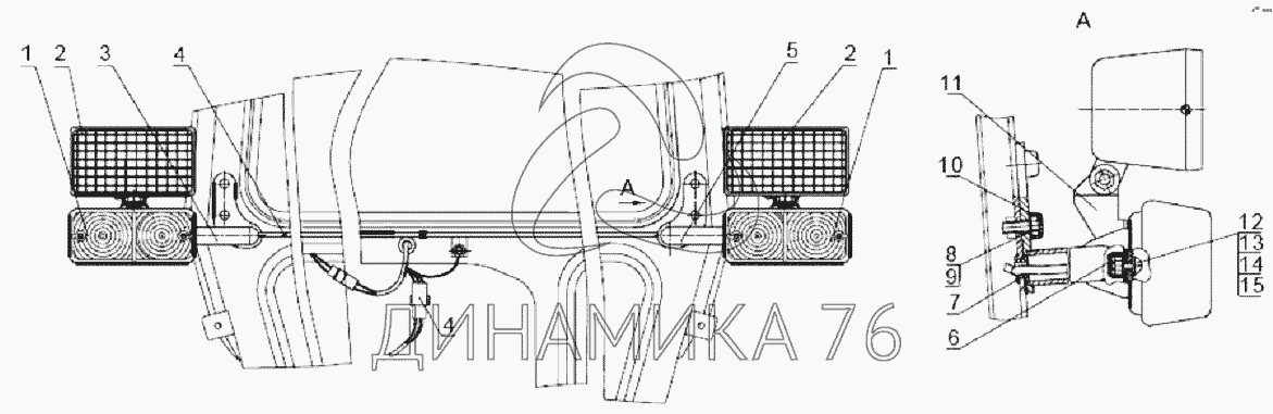 Установка фонарей передних с рабочими фарами — 1025.5: