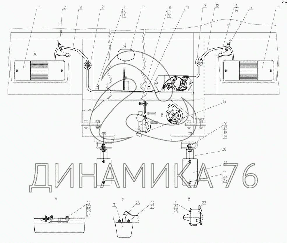 Перечень комплектующих от Установка фонарей задних на 1025.5